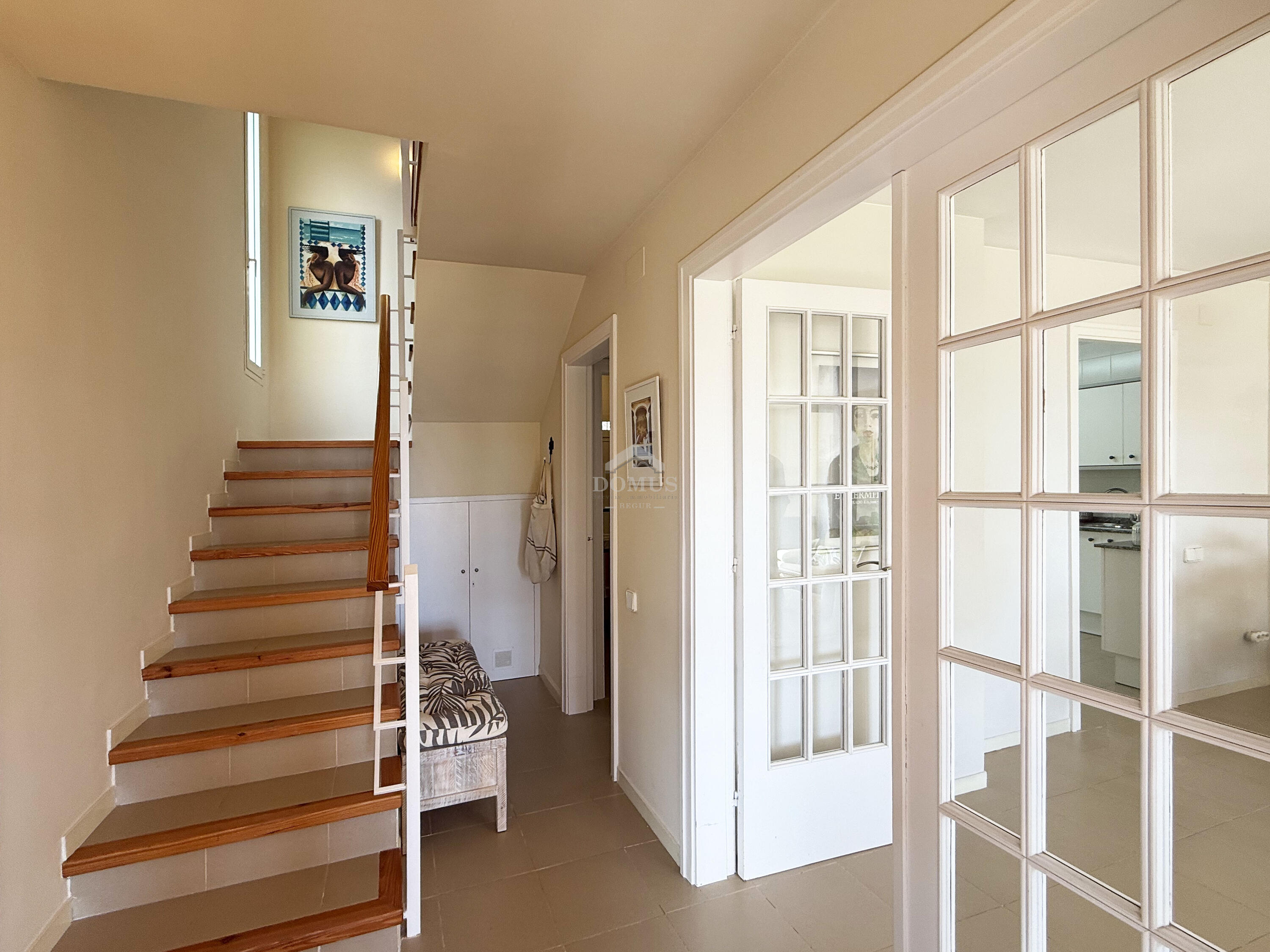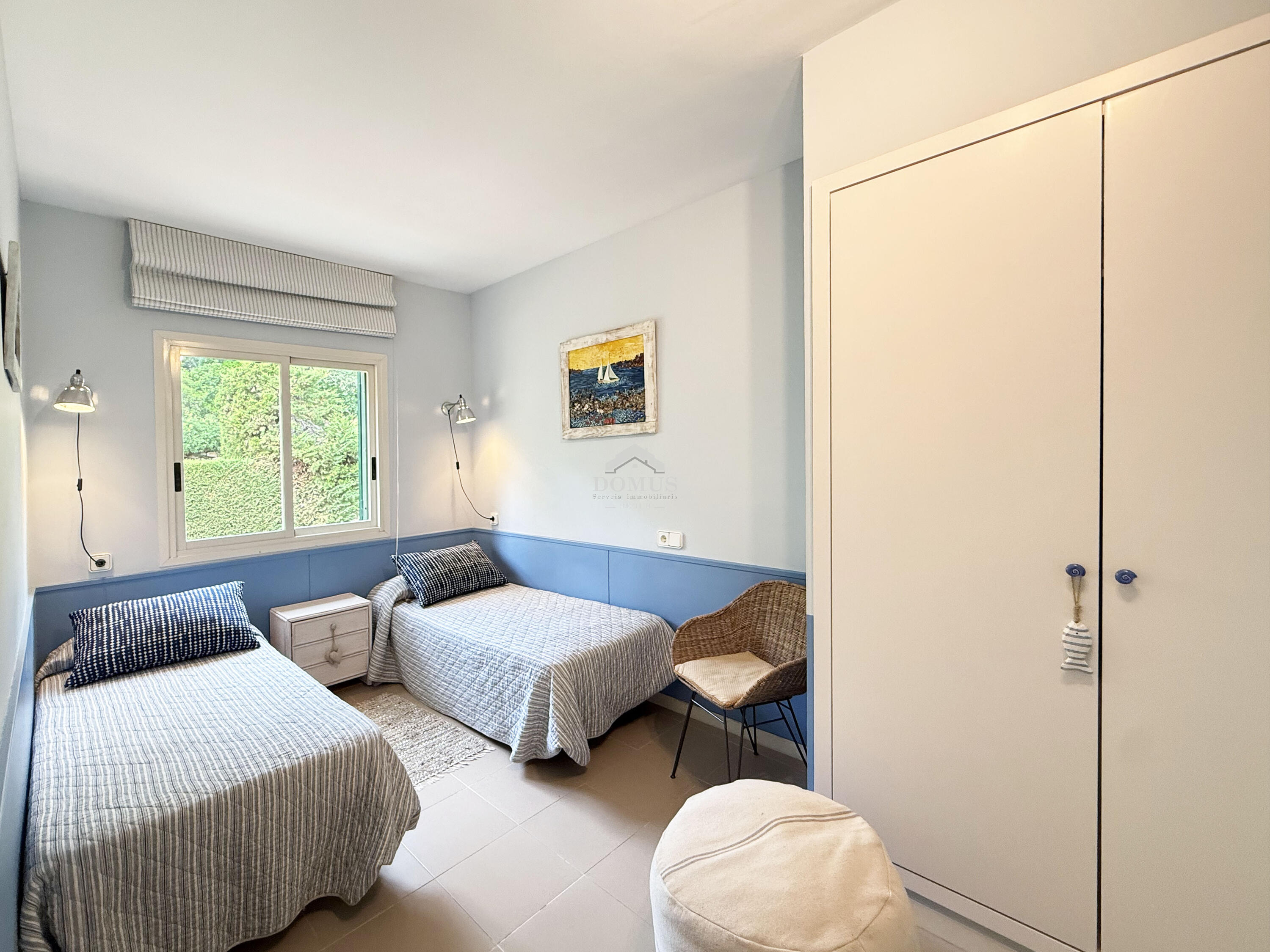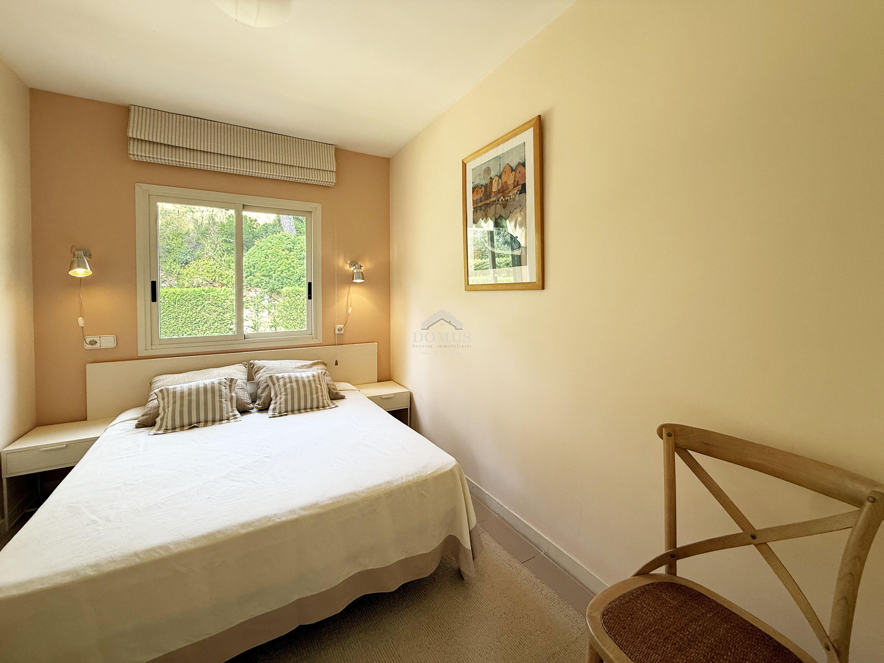 Casa aparellada d'estil mediterrani, situada a la prestigiosa urbanització d’Es Castellet, a només 1,5 km de la platja d'Aiguablava i del port de Fornells. Amb vistes al mar i envoltada de natura, aquesta propietat és ideal tant com a residència principal com per a segona residència.