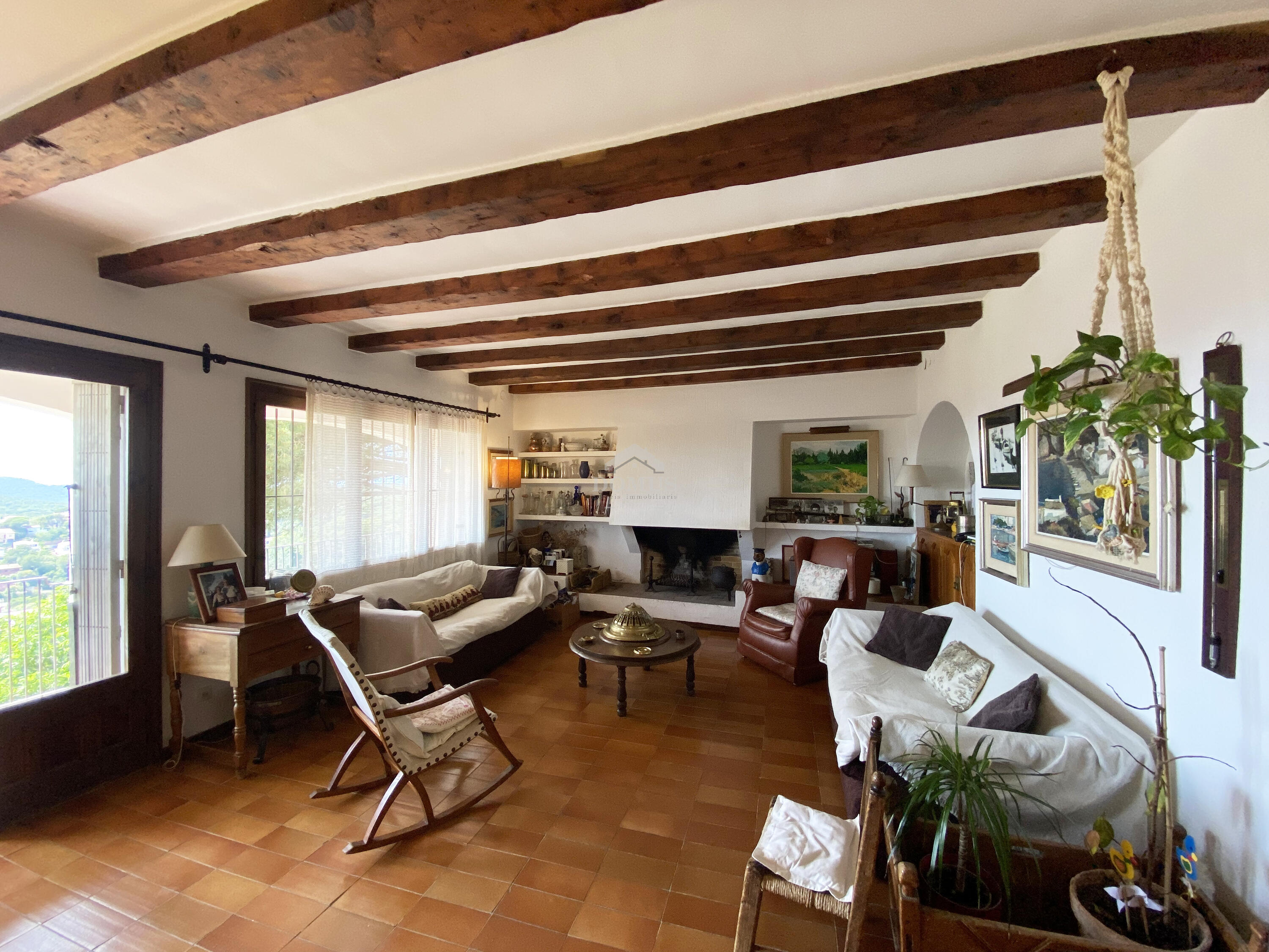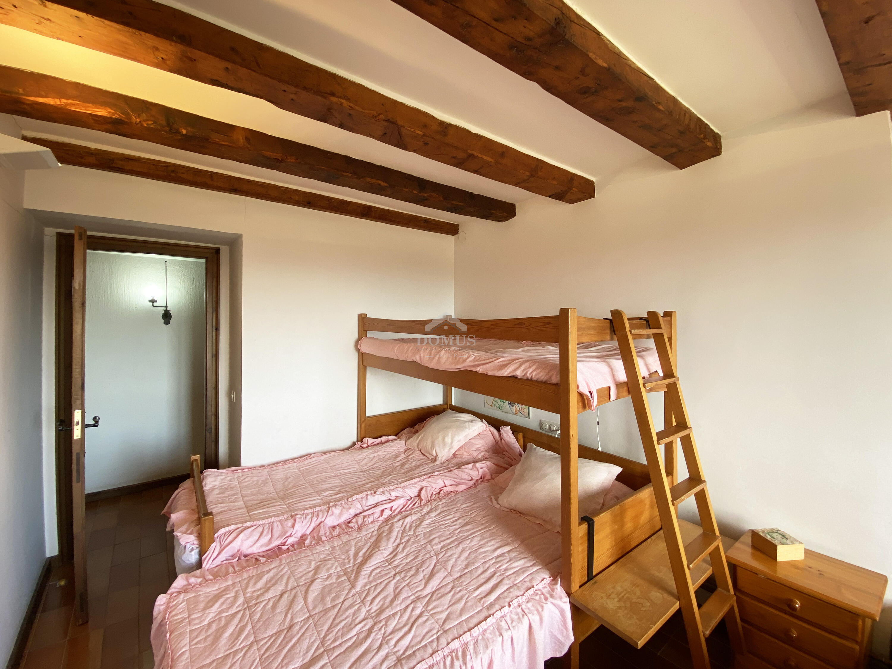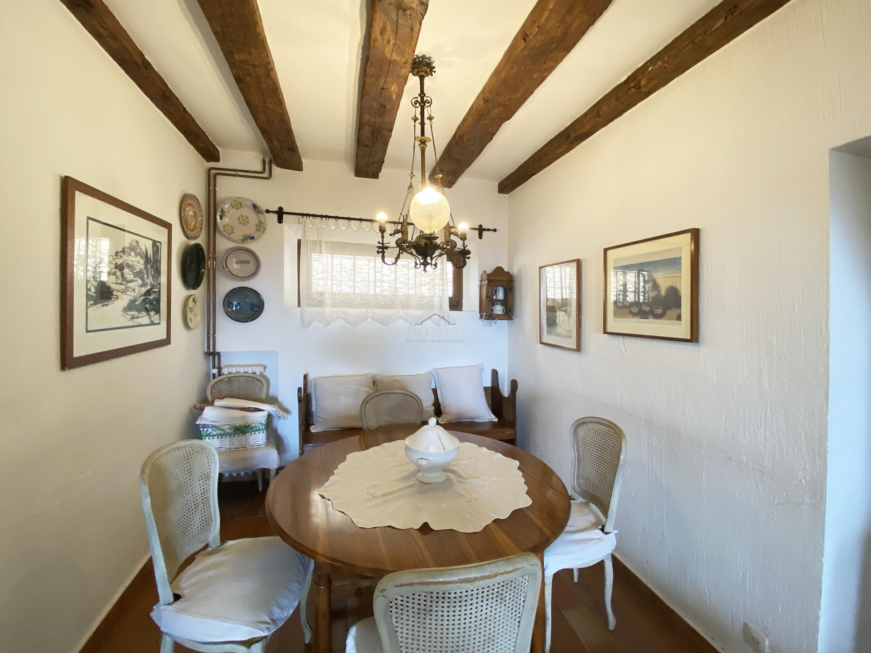 La planta inferior, dissenyada per al confort i la vida quotidiana, ofereix una àmplia zona d’estar-menjador amb sortida directa a una terrassa privada, perfecta per sopars a la fresca. La cuina, independent i funcional, manté l'estil tradicional.