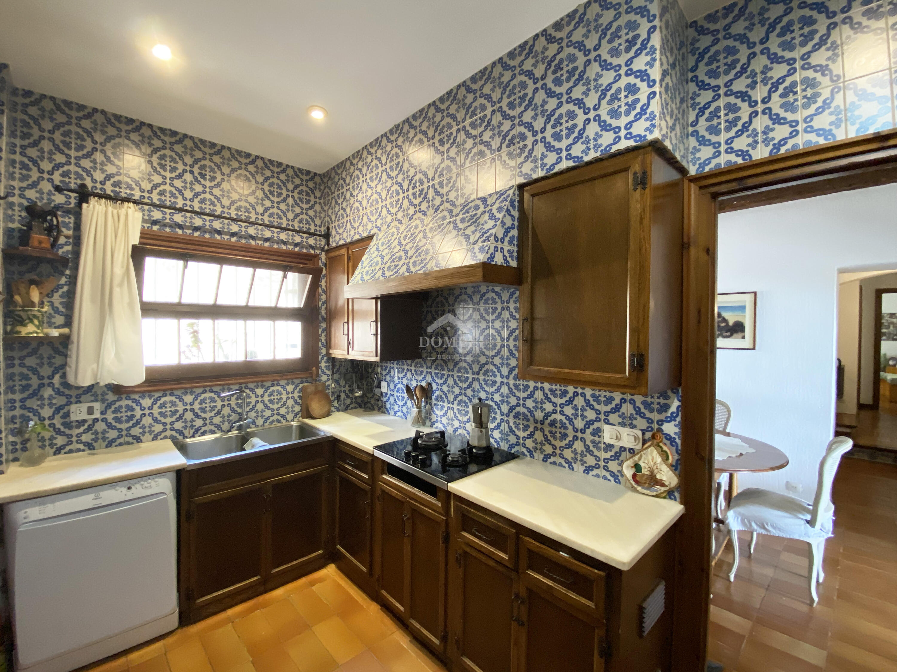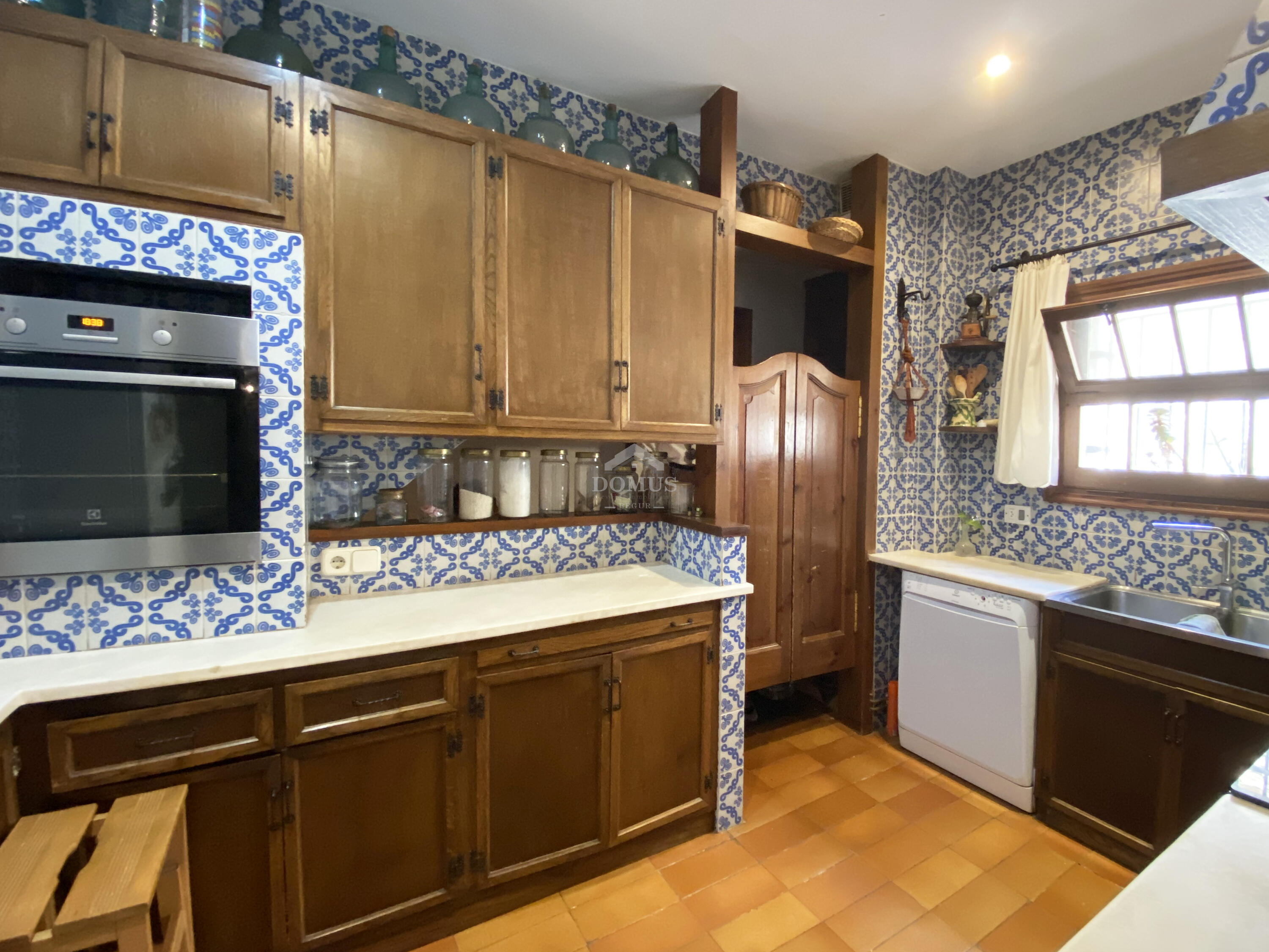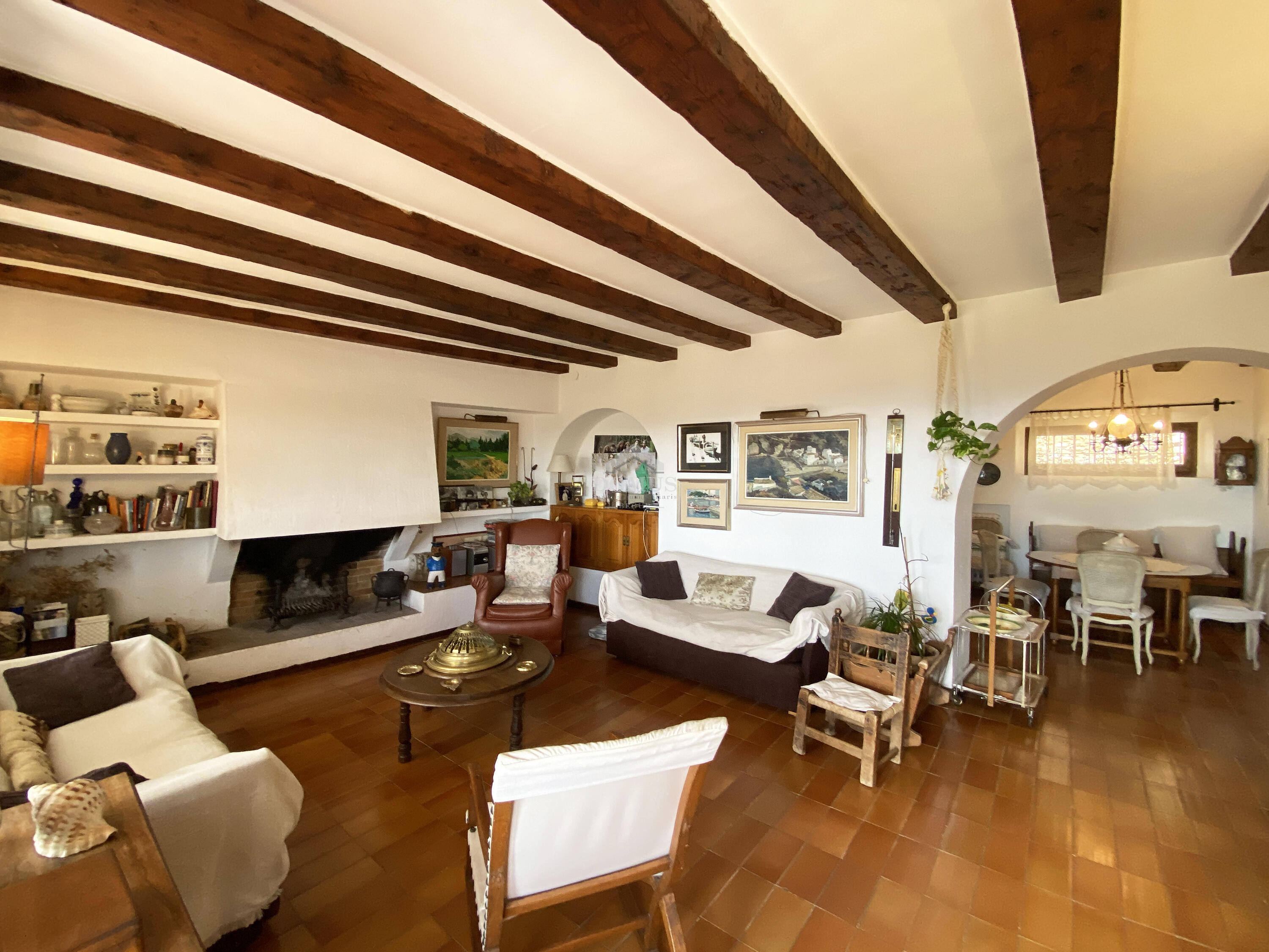La planta inferior, dissenyada per al confort i la vida quotidiana, ofereix una àmplia zona d’estar-menjador amb sortida directa a una terrassa privada, perfecta per sopars a la fresca. La cuina, independent i funcional, manté l'estil tradicional.