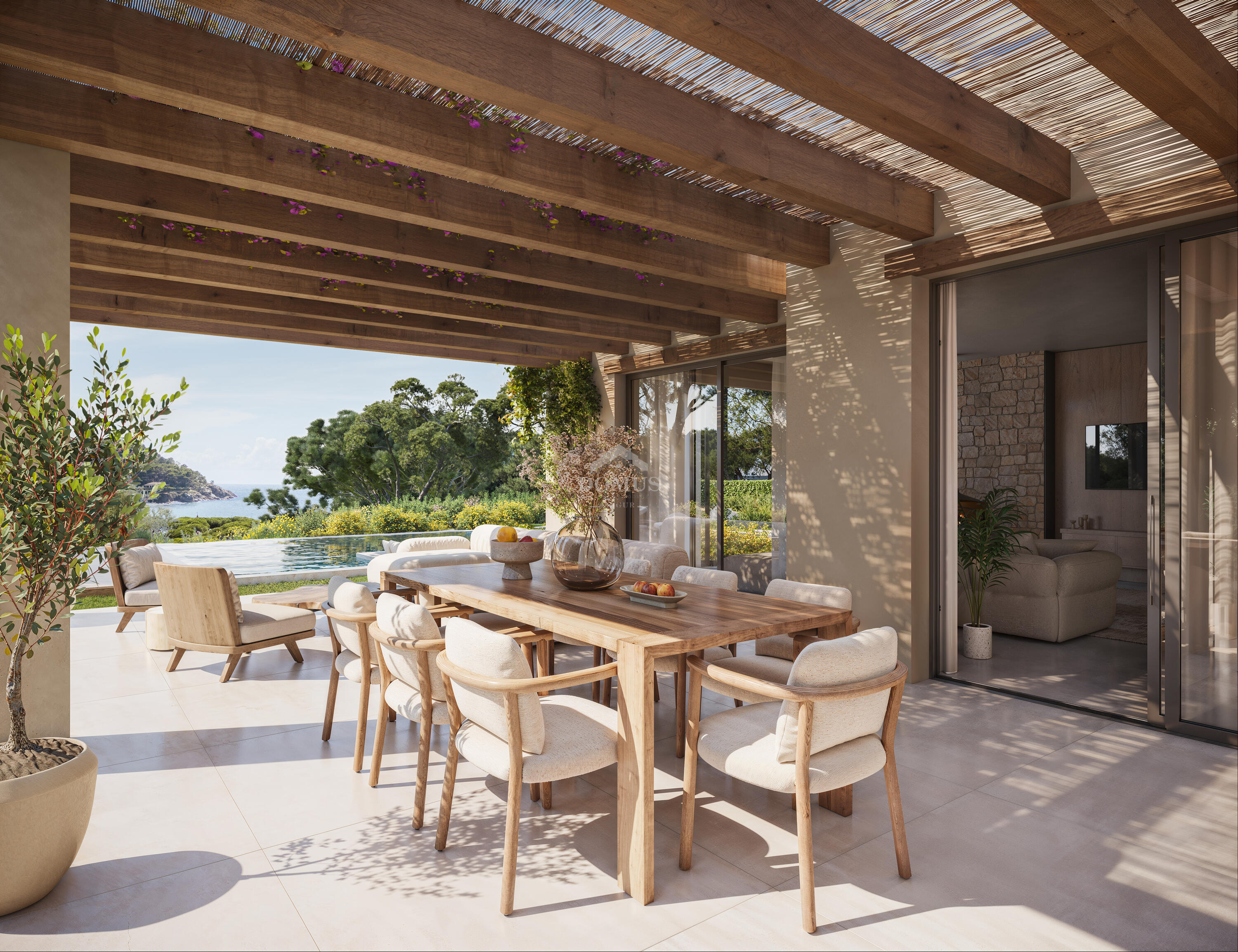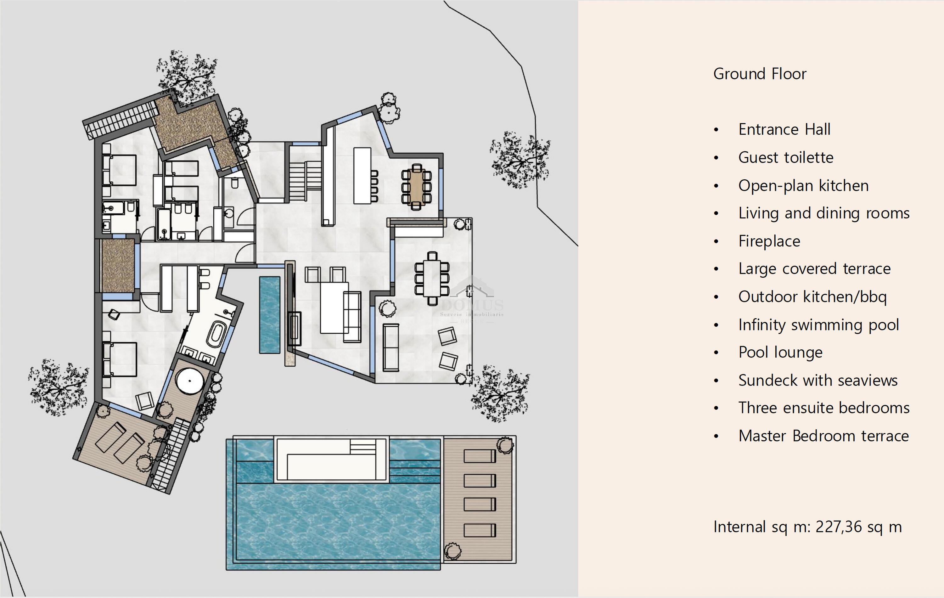 Amb una parcel·la de més de 2.310 m², la vil·la ha estat concebuda per integrar-se de manera orgànica amb el seu entorn mediterrani. La seva arquitectura moderna, amb línies netes i grans finestrals, permet gaudir de llum natural durant tot el dia, mentre que les múltiples terrasses i zones exteriors conviden a viure a l'aire lliure tot l'any.
