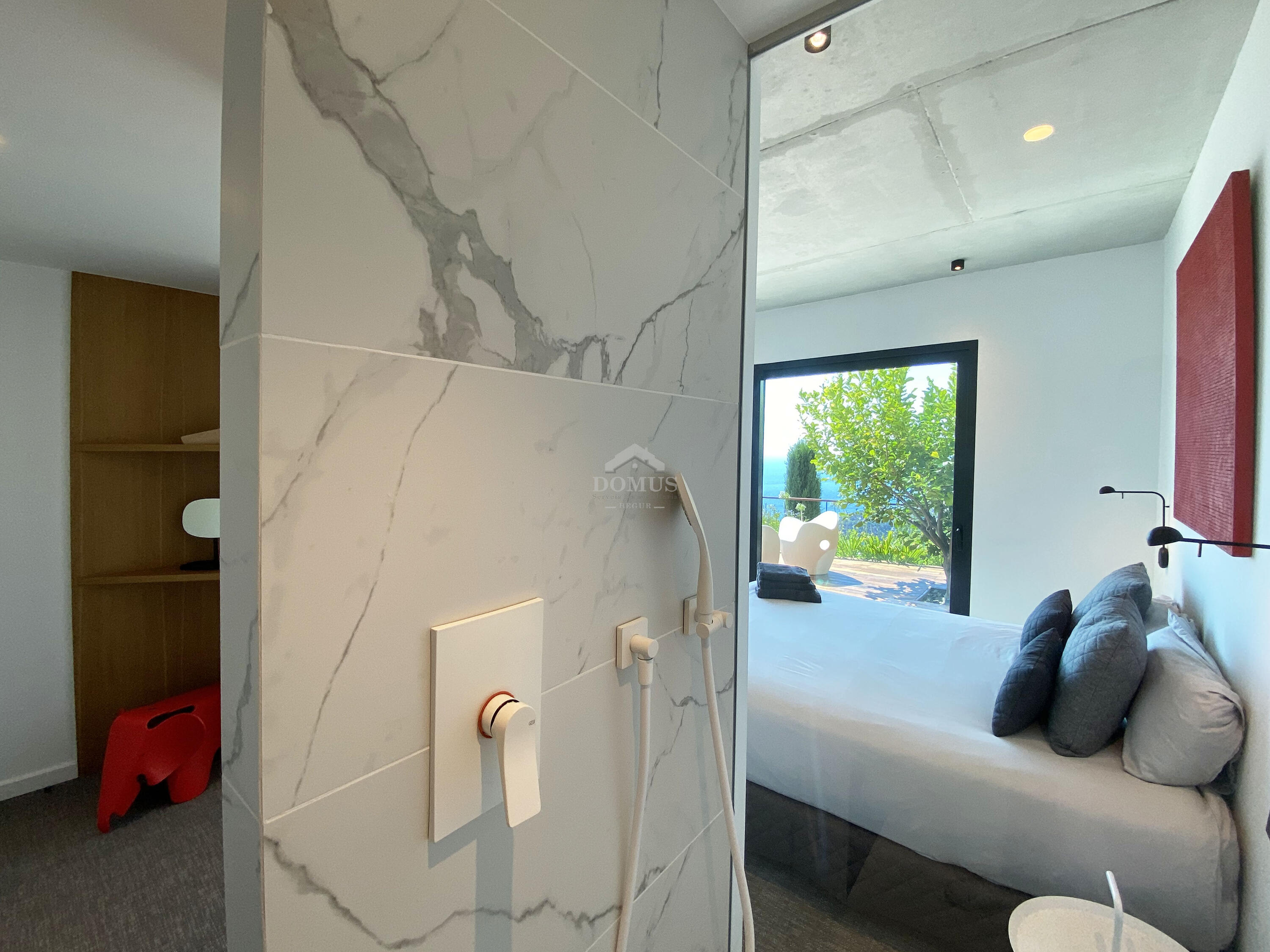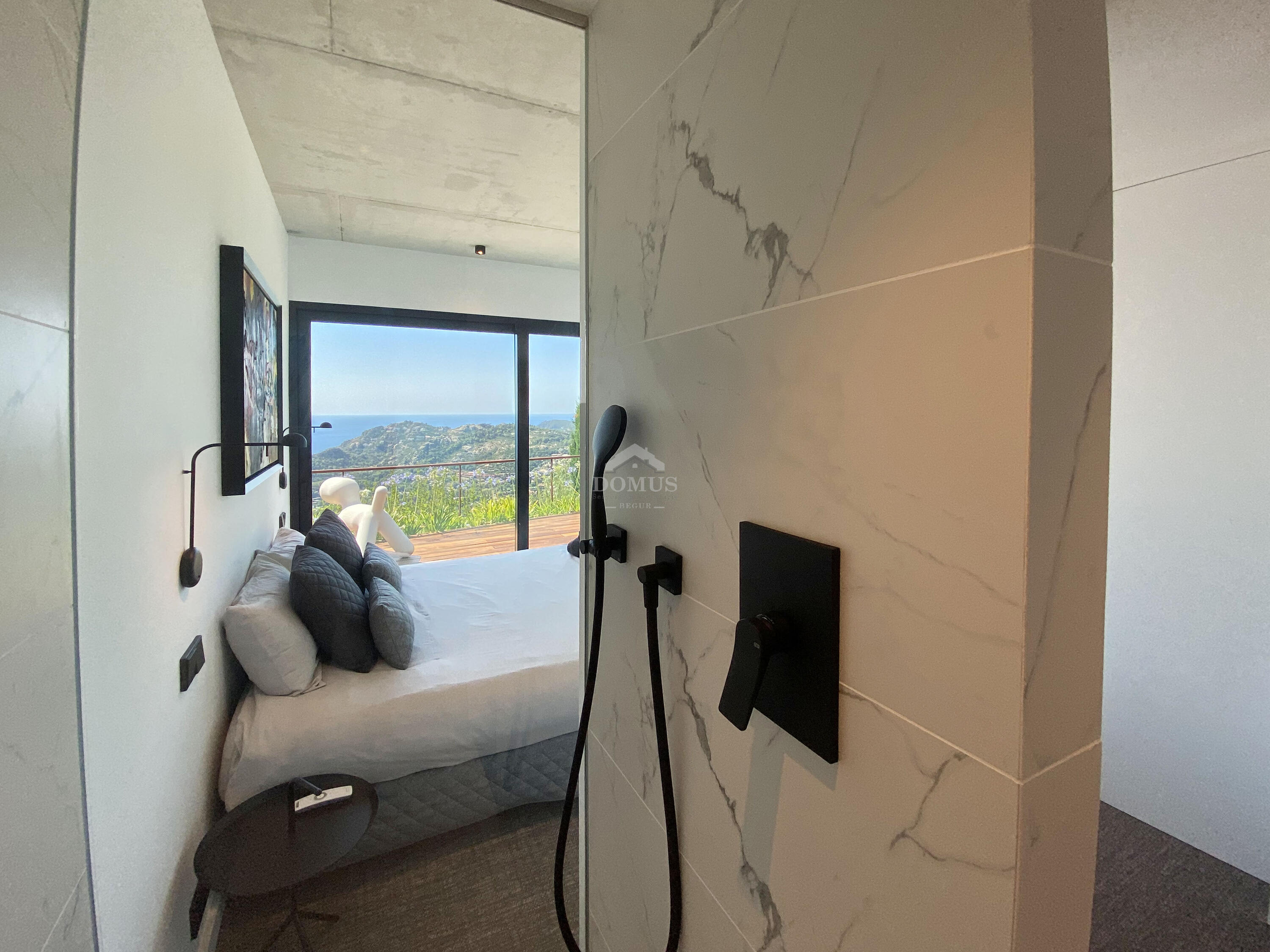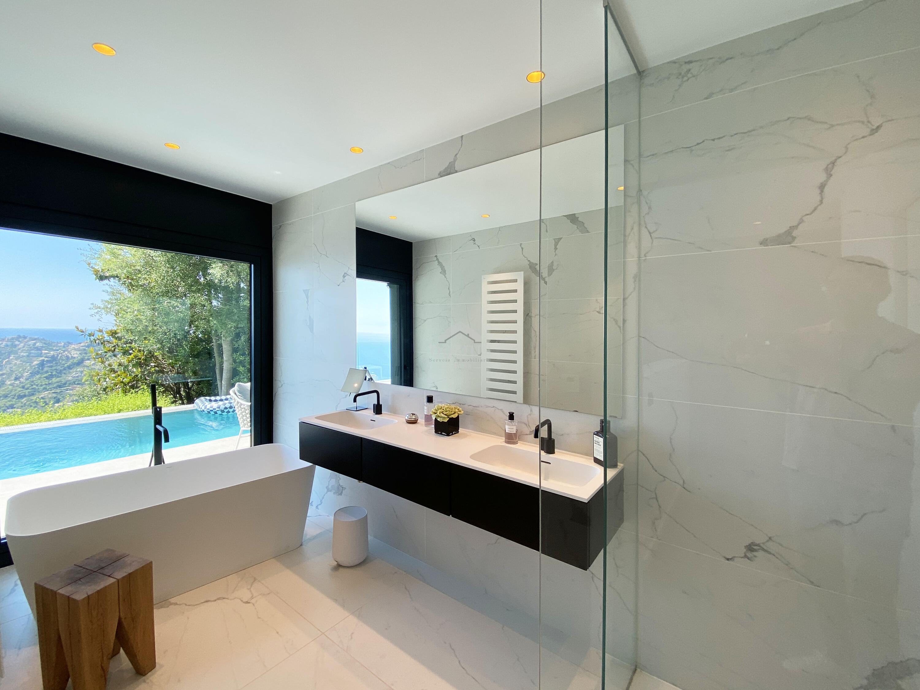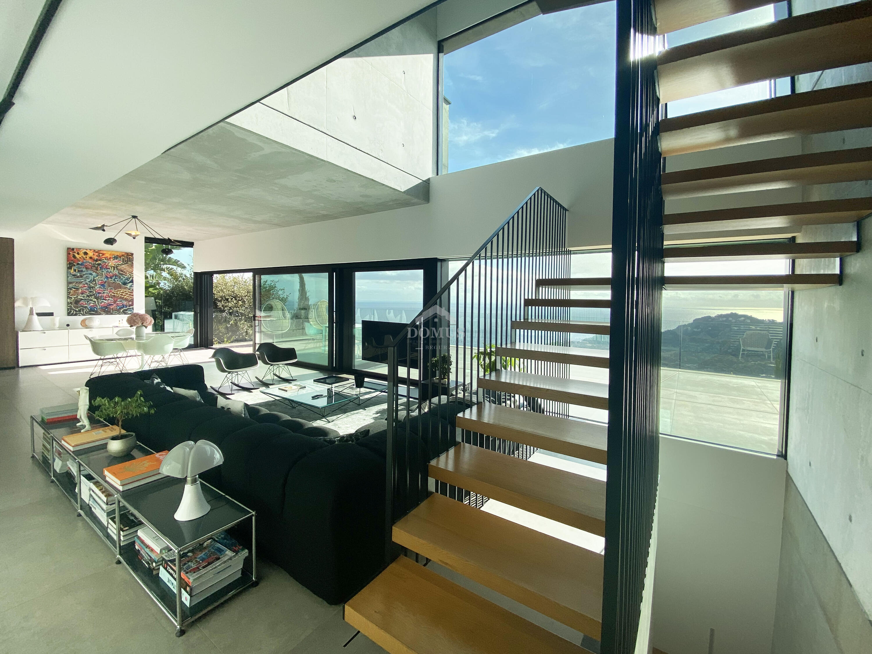 La vila, amb les línies pures i materials de primera qualitat, combina harmoniosament modernitat i encant mediterrani. La seva òptima orientació i els amplis finestrals proporcionen una llum natural excepcional i vistes panoràmiques al mar des de totes les estances.