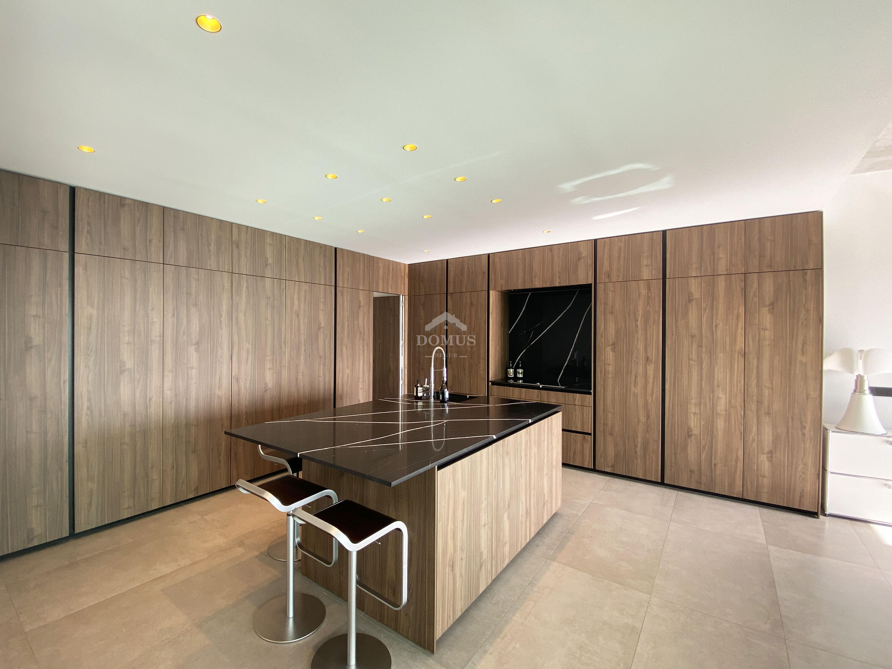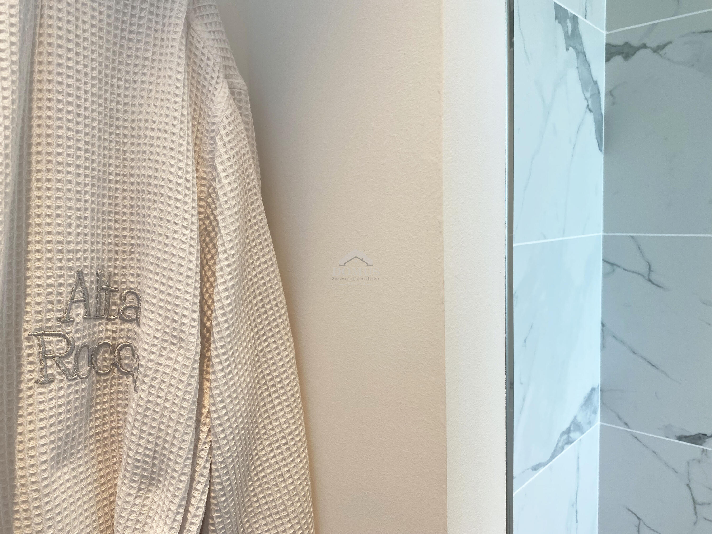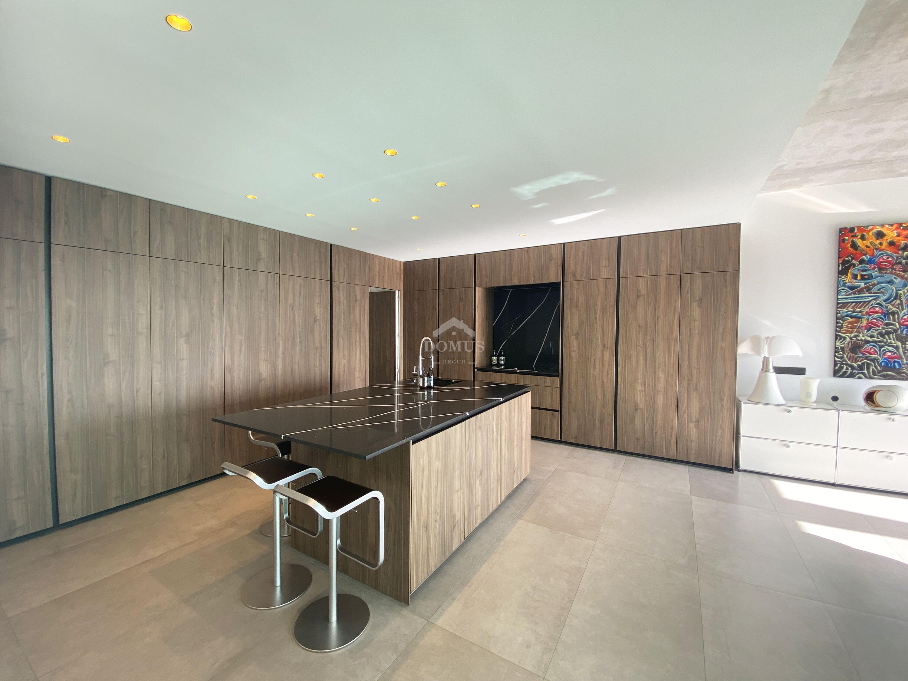 • Nivell principal: un impressionant saló-menjador inundat de llum natural que s'obre a una terrassa espectacular amb piscina infinita, oferint vistes panoràmiques al Mediterrani. La cuina americana, totalment equipada amb electrodomèstics d'alta gamma, ofereix un espai acollidor ideal tant pel dia a dia com per rebre convidats.