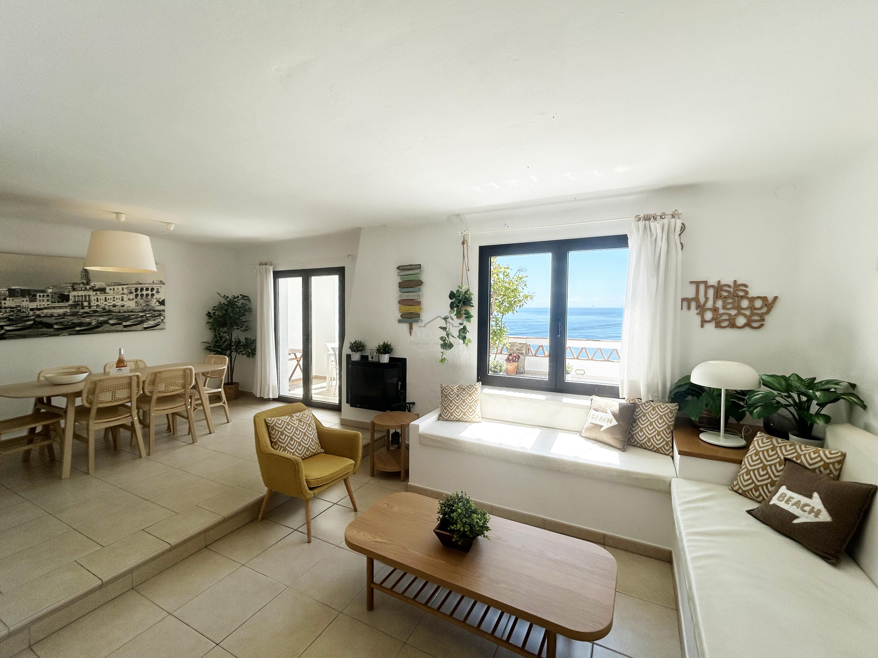 L’habitatge es distribueix en dos nivells i ofereix comoditat i llum natural. A la planta baixa hi trobem un ampli saló-menjador amb cuina oberta totalment equipada i un bany amb dutxa. Des del saló s’accedeix a una magnífica terrassa de 35 m², equipada amb mobiliari d’exterior, perfecta per esmorzar, relaxar-se o gaudir de les vistes al mar.