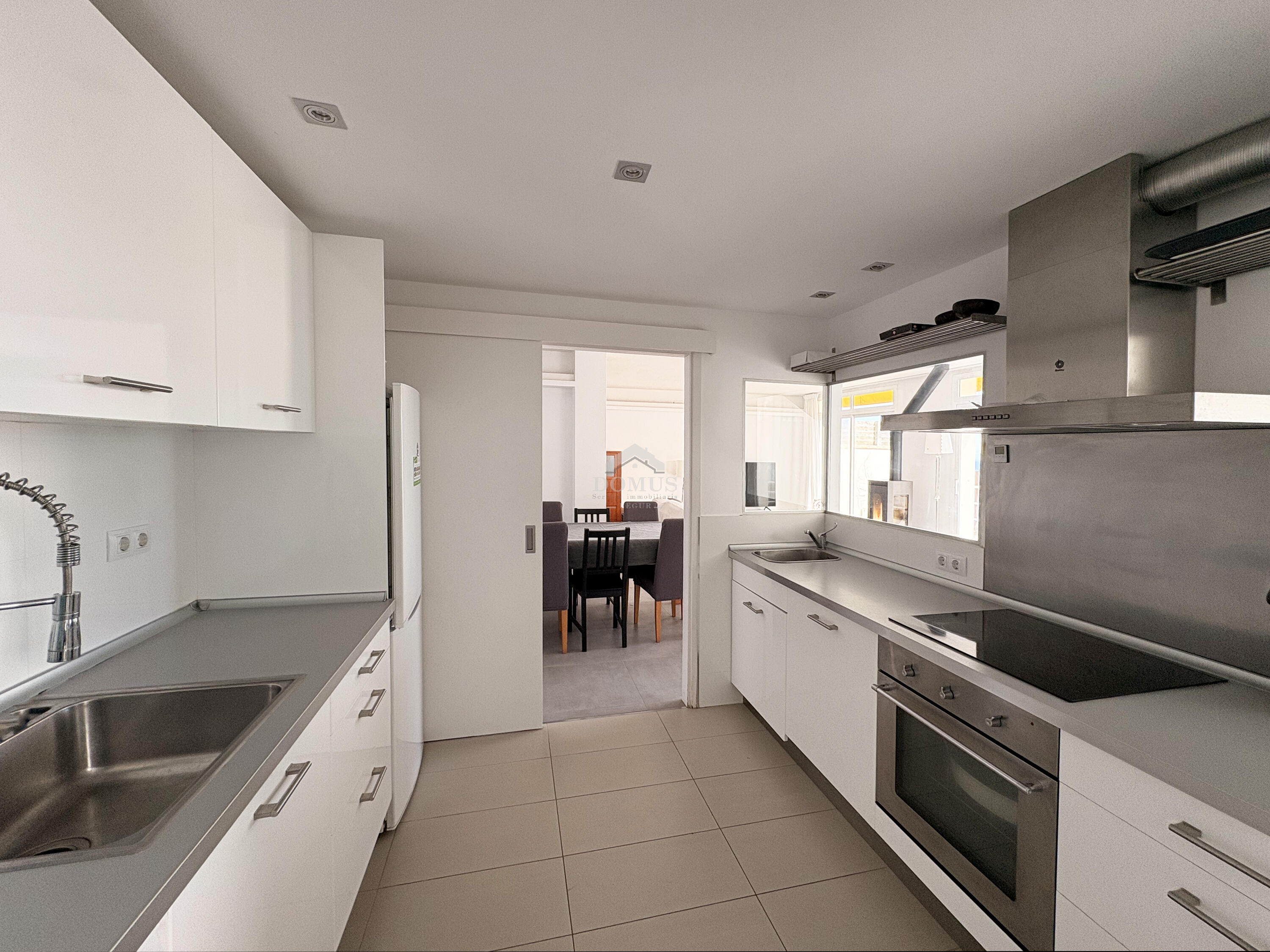 A la planta baixa, l'espai s'obre a un ampli i lluminós saló-menjador, on podreu gaudir de moments agradables en família o amb amics. Aquest espai està dissenyat per ser acollidor i funcional, perfecte per relaxar-vos després d'un dia a la platja. La cuina, completament equipada, s'integra perfectament amb el saló i ofereix accés a una gran terrassa, on podràs gaudir d'àpats exteriors, prendre el sol o simplement relaxar-te mentre contemples les vistes al mar. A més, hi ha un lavabo de cortesia en aquesta planta, cosa que afegeix comoditat per als teus convidats.