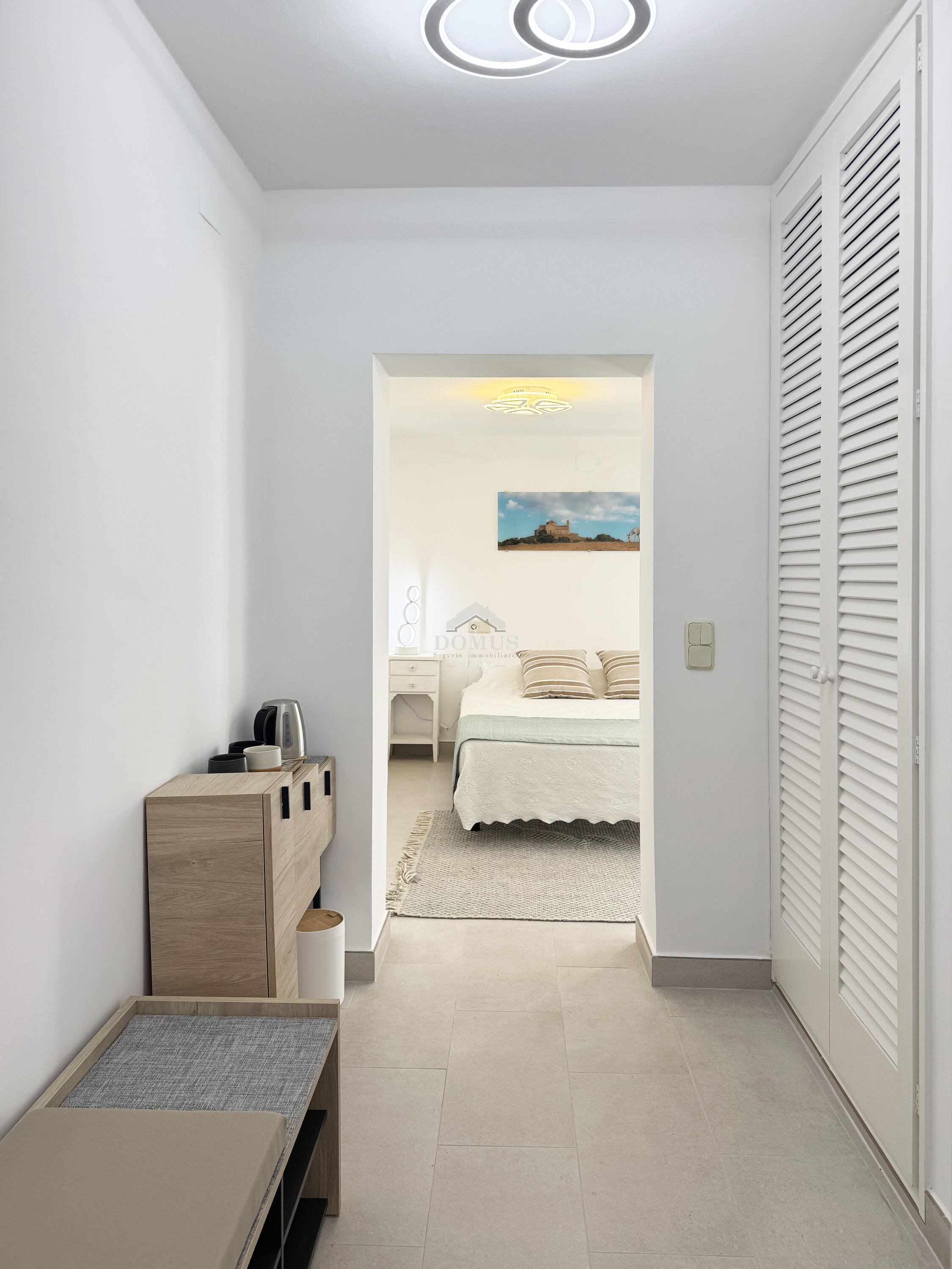 L’habitatge es distribueix en dos nivells. A la planta principal hi trobem un lluminós saló-menjador amb sortida a una agradable terrassa amb vistes al mar, cuina oberta totalment integrada, lavabo de cortesia i una àmplia habitació doble tipus suite amb bany privat.