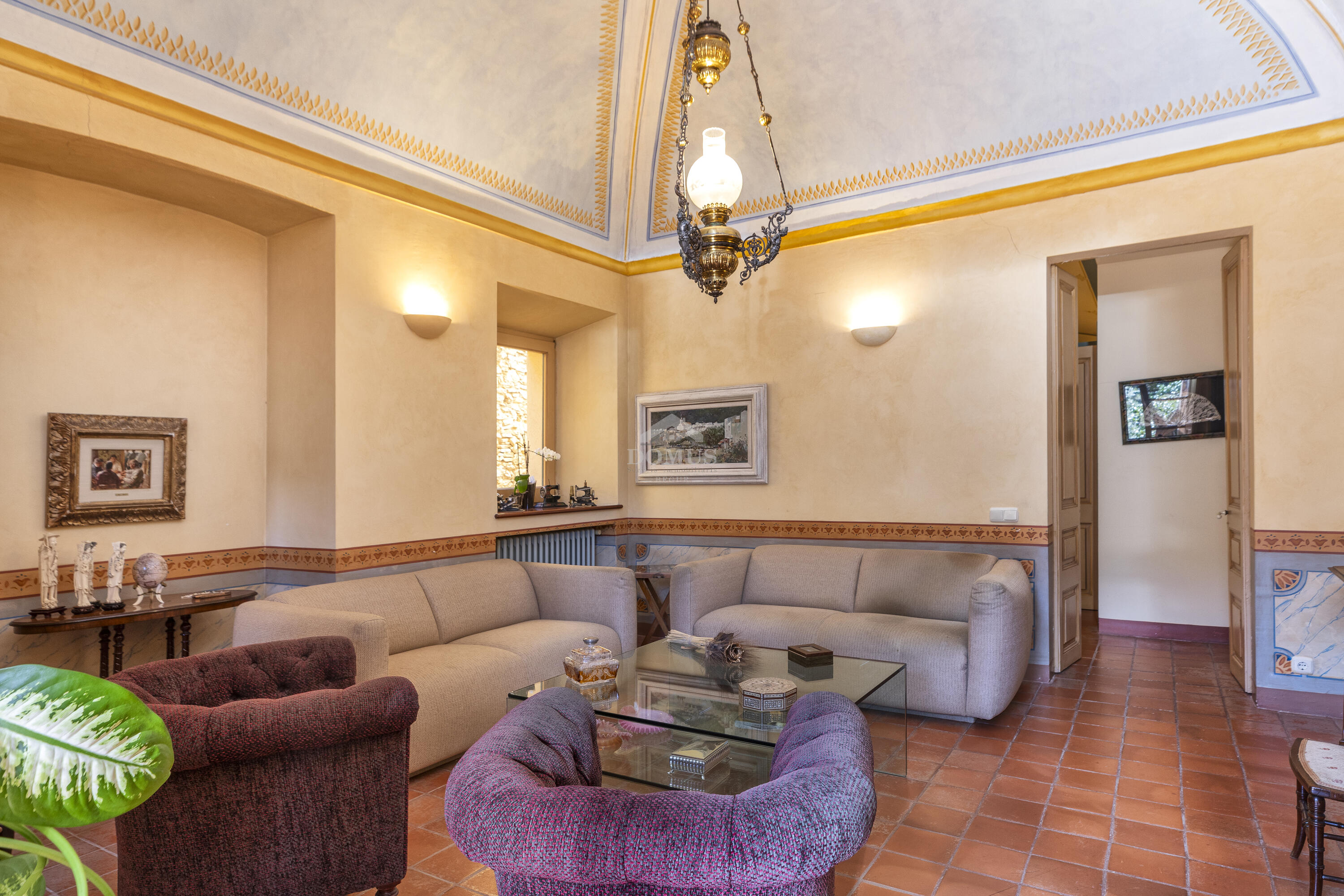 It offers four bedrooms, five bathrooms, extensive covered terraces with frescoed walls, and several large reception rooms. There is potential to add several more bedrooms or even convert the property into a luxury boutique hotel.