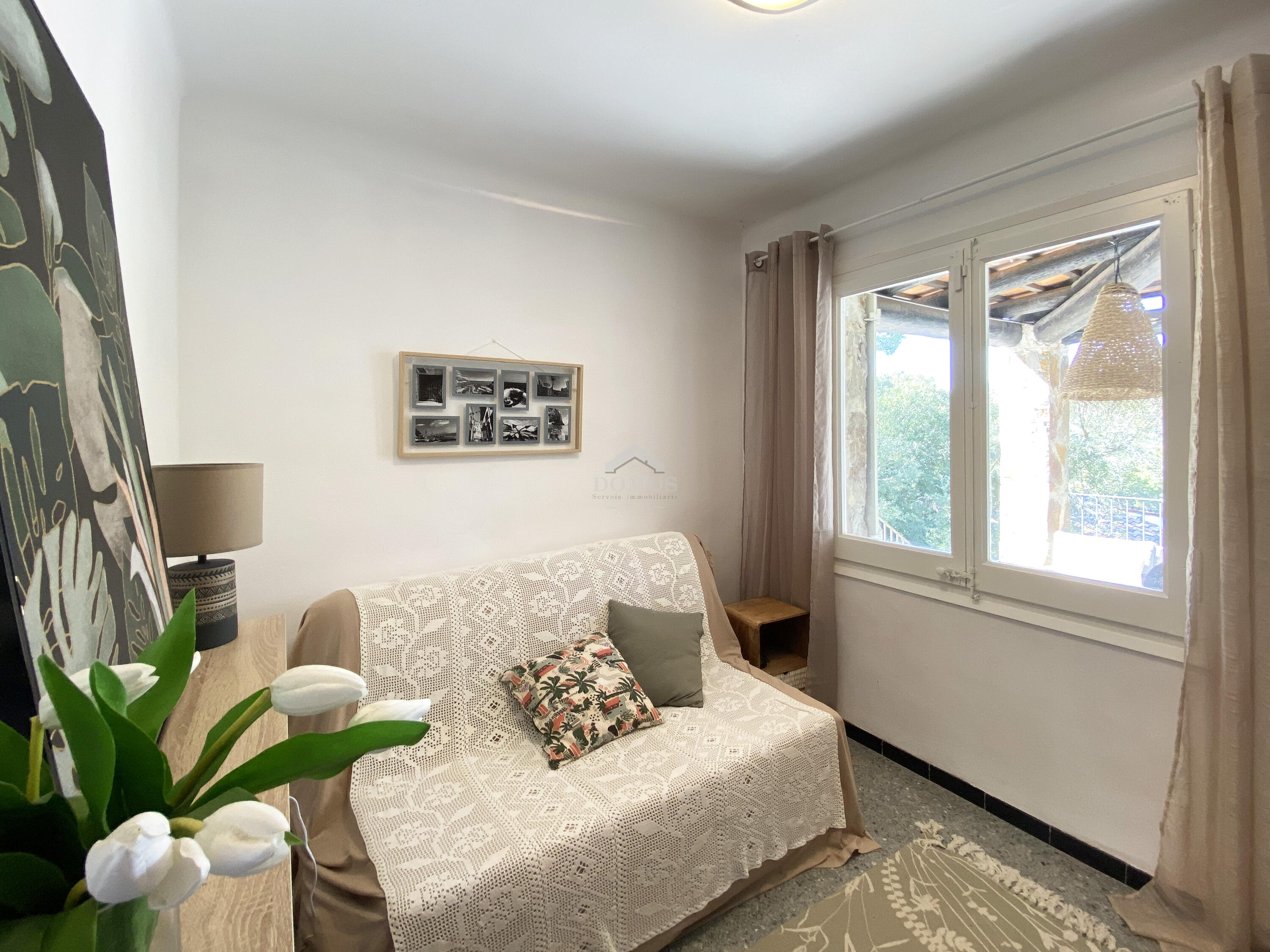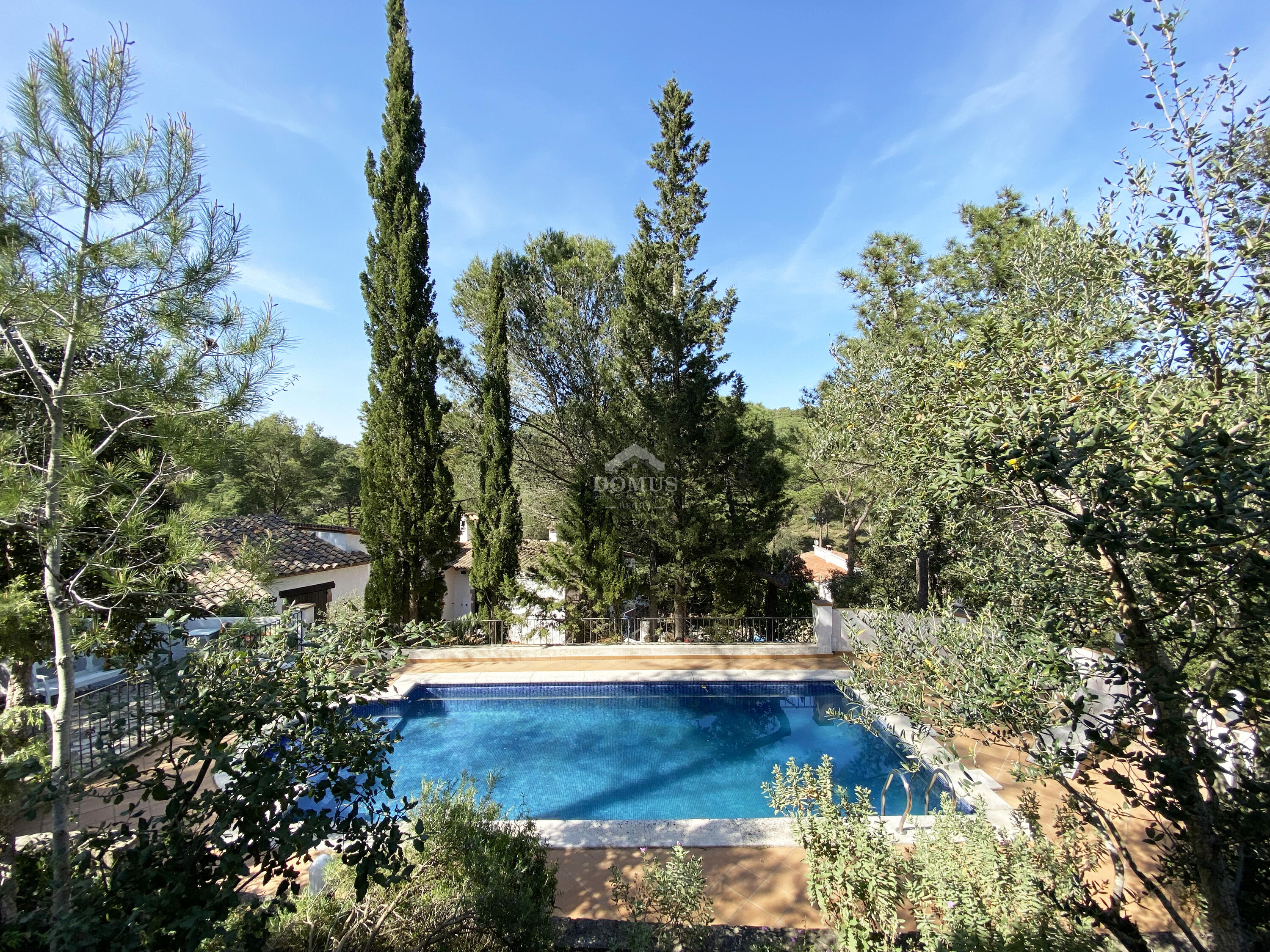 Outside, the property opens onto a green, private and well-kept setting, where every corner has been designed to enjoy the Mediterranean lifestyle. The covered porch is the ideal spot for long summer meals and relaxing moments in the shade. The spacious private pool area blends naturally into the garden, surrounded by native vegetation and offering plenty of space to unwind in the sun. Dry stone walls and thoughtful landscaping details enhance the authentic character so typical of the region.