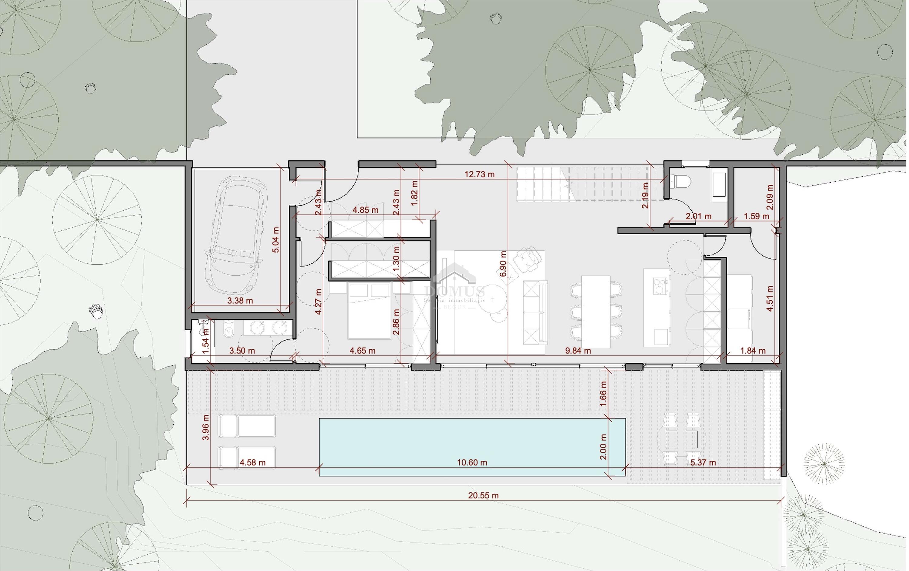 The house is distributed over two levels designed to optimize space, light, and functionality: