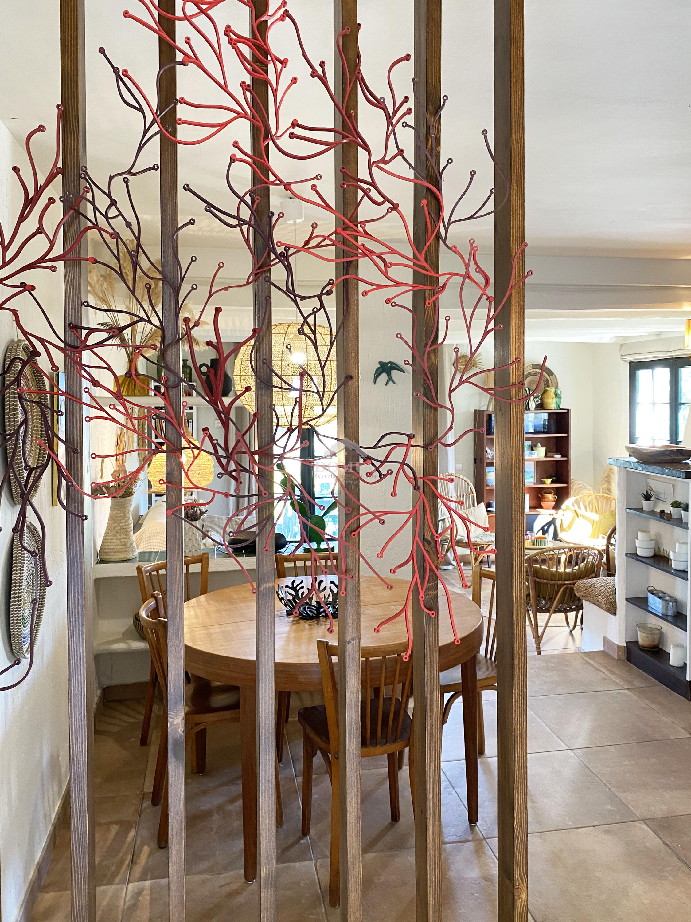 De woonkamer-eetkamer, doordrenkt van natuurlijk licht, verwelkomt je met een gezellige sfeer en biedt toegang tot een ruim terras met indrukwekkend uitzicht op zee. Hier kun je buiten dineren of gewoon ontspannen terwijl je het uitzicht over de horizon bewondert.