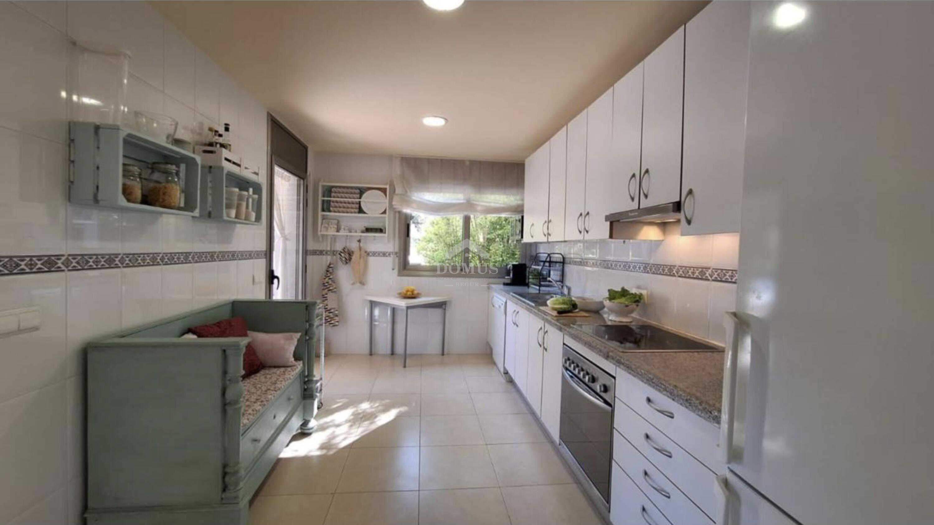 Het hart van de woning is de ruime en lichte woon-eetkamer, die aan drie zijden open is en directe toegang biedt tot de overdekte terrassen, de vlakke tuin, het privézwembad en de buitengrill: de perfecte plek om te ontspannen in de zon of te genieten van avonden met familie en vrienden.