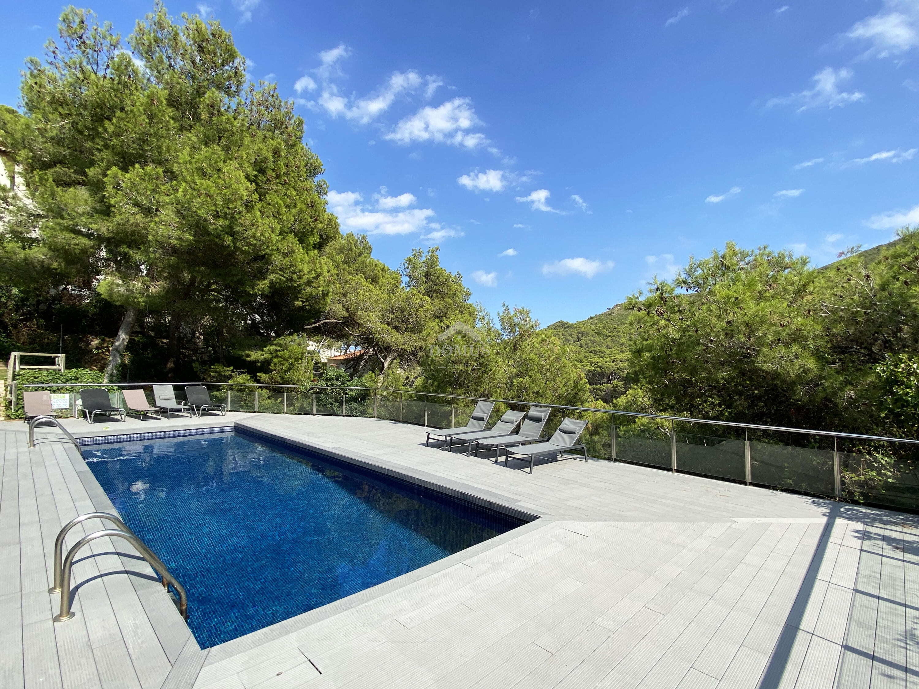 Fantastische woning met uitzicht op zee en de bergen, gelegen in een rustige woonwijk, op ongeveer 4 km van het centrum van Begur en het strand van Aiguablava. Zeer praktisch en functioneel, gebouwd op twee niveaus op een perceel van 1.599 m², het is verdeeld in een ruime en lichte woon-eetkamer met toegang tot grote veranda terras, onafhankelijke keuken, vijf slaapkamers met tweepersoonsbed, twee van hen met airconditioning en twee van hen type suite met badkamer, en een van hen met airconditioning, zijn er ook twee complete badkamers. Een van de suites is onafhankelijk toegankelijk vanuit de tuin.