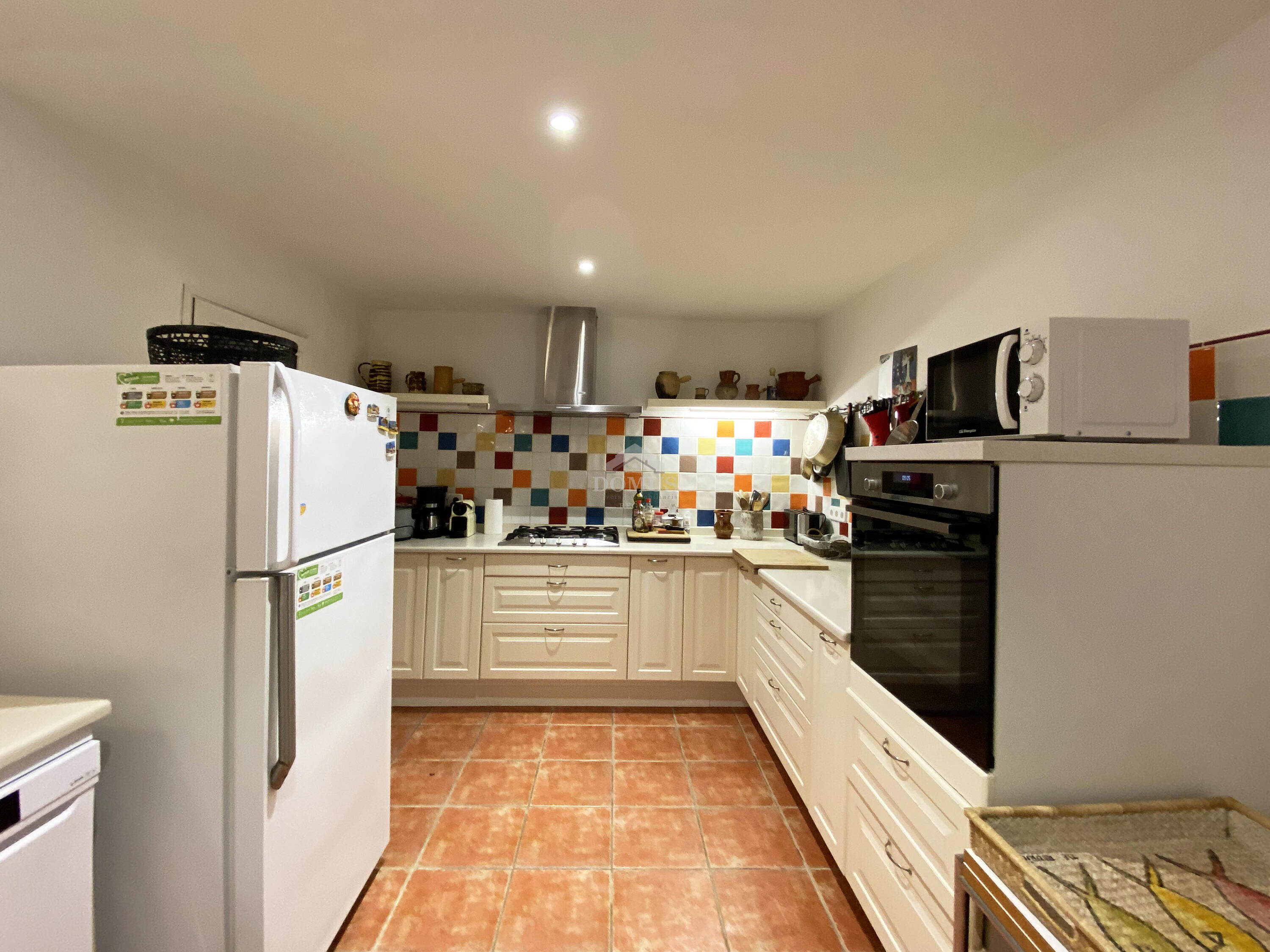 Het hoofdgebouw is verdeeld in een hal, volledig uitgeruste keuken open naar de woon-eetkamer met toegang tot het terras, drie tweepersoons slaapkamers en twee complete badkamers. In het zwembadgedeelte is er een vierde onafhankelijke slaapkamer met een onderschuifbed en een complete badkamer met douche.