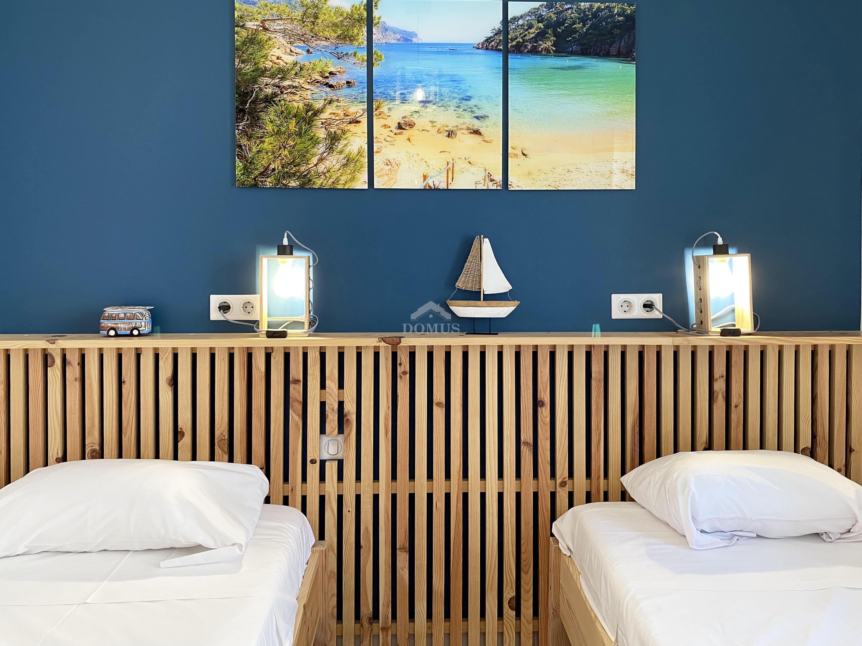 Het huis beschikt over drie zorgvuldig ingerichte slaapkamers op de bovenverdieping, elk ontworpen om je een rustige en rustgevende nachtrust te bieden. De master suite biedt een ruime en-suite badkamer en directe toegang tot een privéterras met uitzicht op zee. De andere twee slaapkamers zijn ook comfortabel en licht, met tweepersoonsbedden en voldoende kledingkasten om je spullen in op te bergen.