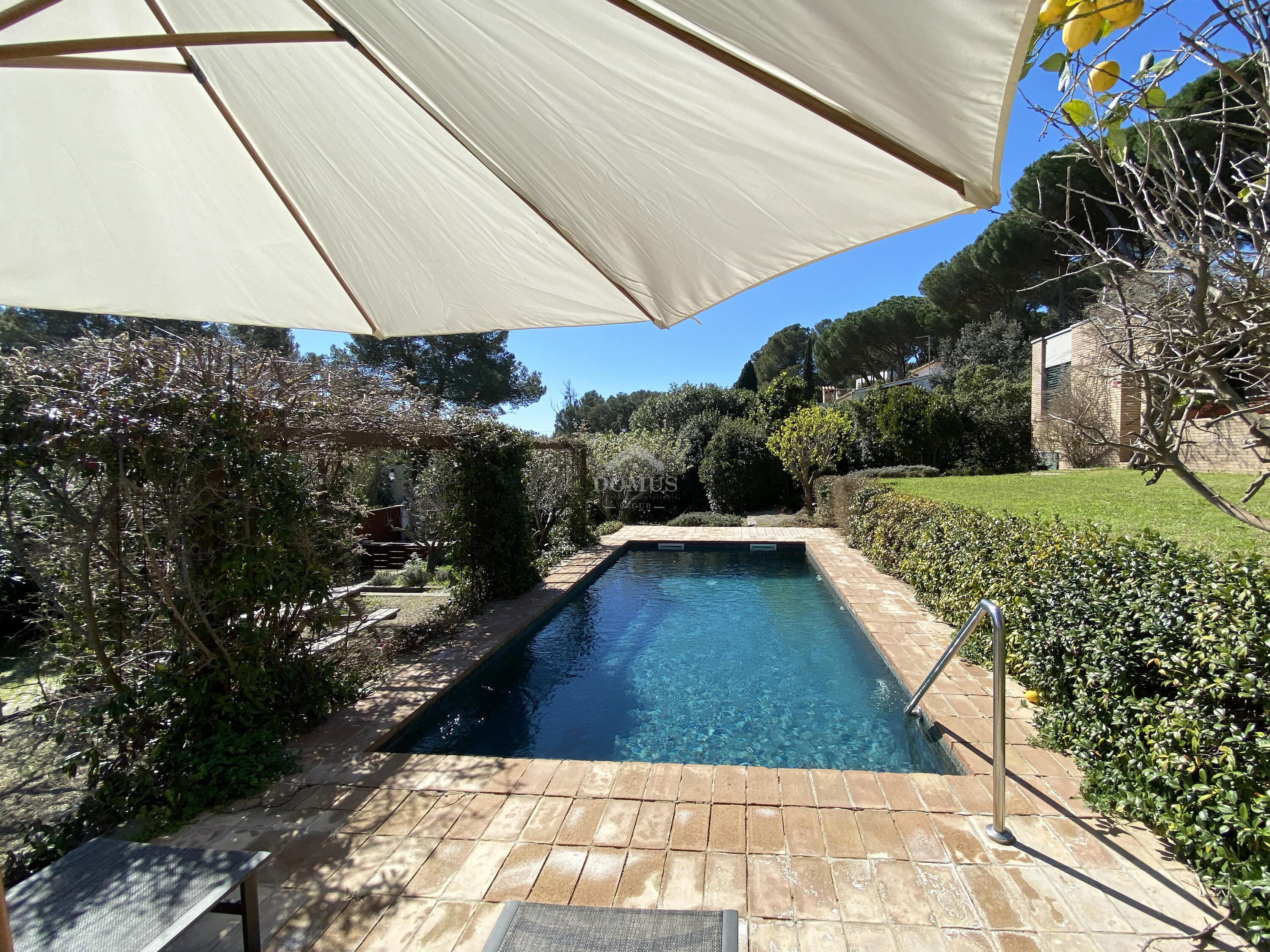 De woning maakt deel uit van een kleinschalig complex met gemeenschappelijk zwembad, gedeeld door slechts vier huizen, wat zorgt voor rust en privacy. Daarnaast is er een privégarage.