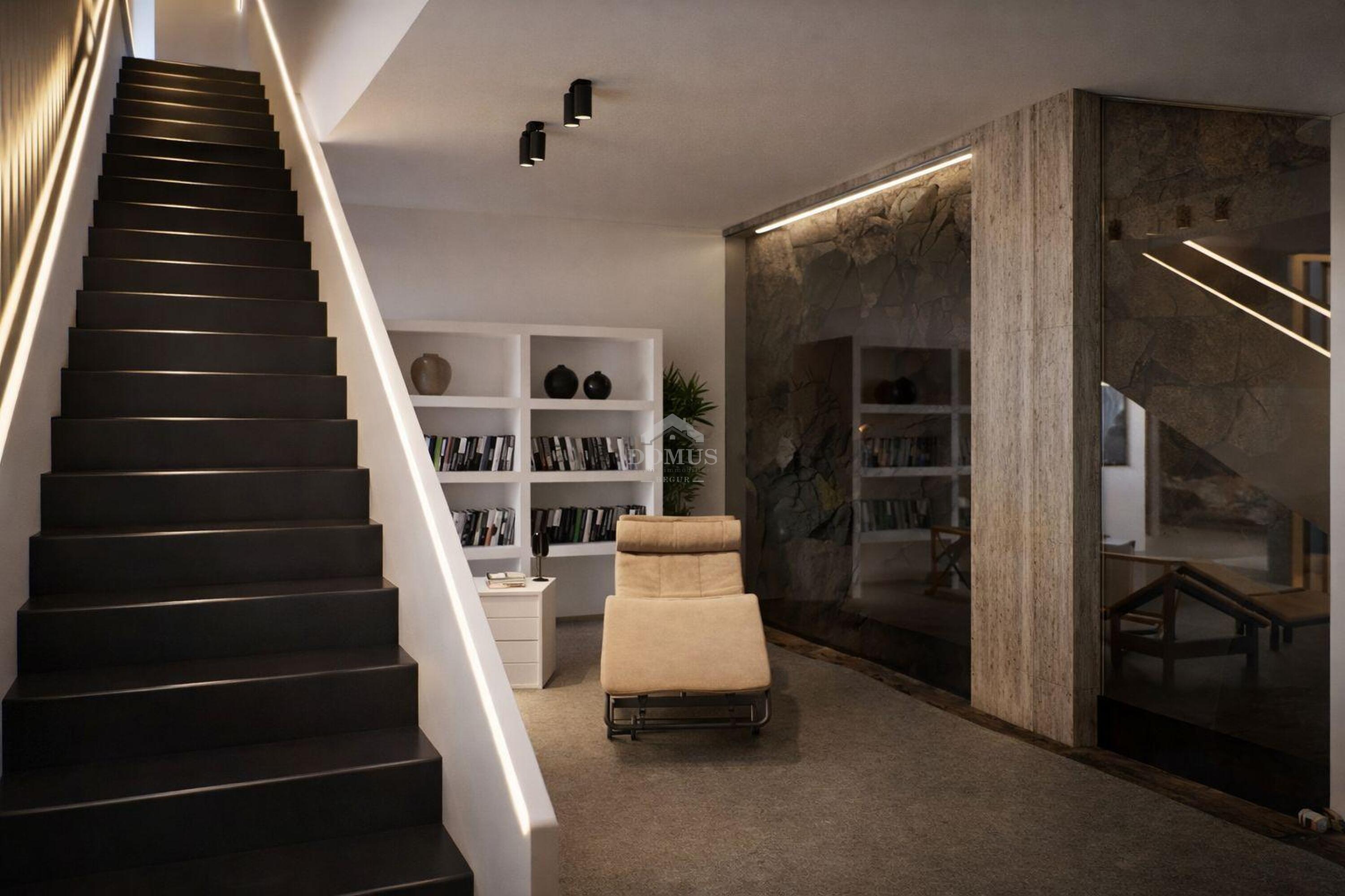 Benedenverdieping: ontworpen voor ontspanning en functionaliteit, met een kantoor dat uitkomt op een patio, een personeelskamer, een wellnessruimte (fitness, sauna, jacuzzi) en een bioscoopzaal. Opslagruimtes en een wasruimte maken het geheel compleet.